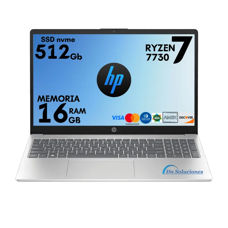 Encuentra la Laptop HP Ryzen 7 7730u SSD 512 GB RAM 16 GB en Dn Soluciones Tumbaco. Si eres de provincia no te preocupes, enviamos los productos por Servientrega de forma rápida y segura.